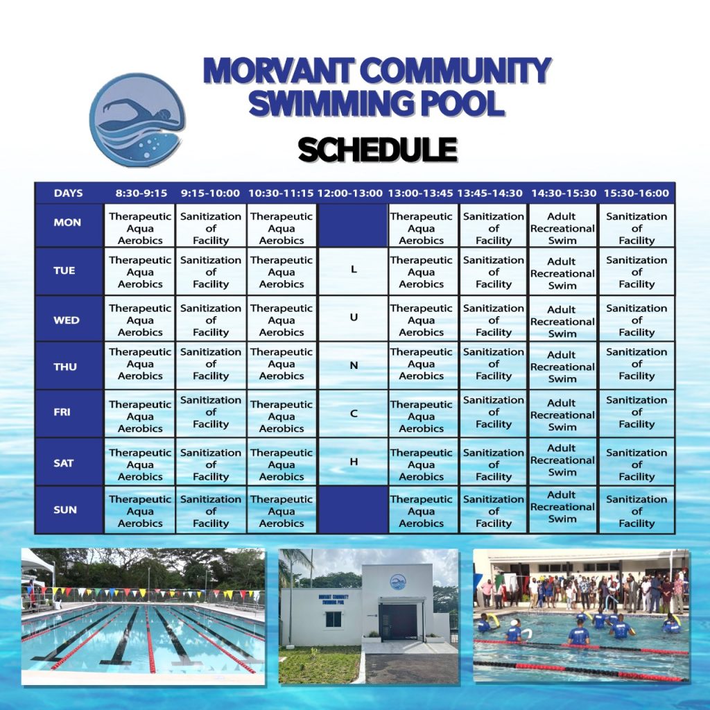 The Morvant Community Swimming Pool is a twenty-five meter (25m) six lane swimming pool located at Coconut Drive, Morvant. The Swimming Pool is staffed by the Trinidad and Tobago Defence ( Coast Guard Arm). it is ideal for learning to swim and can facilitate a myriad of programmes carried out by well-trained instructors.